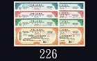 1959、60年中國人民銀行英文版旅行支票10 - 100元(單面)四枚,中英簽名各一套共八枚。均有線孔,九成新及未使用1959 & 60 People's Bank of China traveller cheques $10 - $100 of English var (uniface), 4pcs each w/Chinese & English sign. SOLD AS IS/NO RETURN. AU & UNC w/spindle hole (8pcs) |