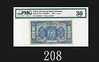 民國十八年雲南富滇新銀行壹佰圓,A字冠大面額非常少見,53分佳品1929 The New Fu-Tien Bank $100, s/n A608281. Very rare for type. PMG 53 |