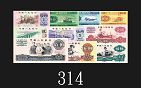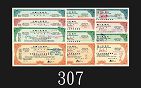 1959-60年中國人民銀行英文、俄文、蒙文版旅行支票10 - 100元(單面)各四枚,共12枚。均有線孔,九成新1959-60 People's Bank of China traveller cheques $10 - $100, 4pcs each English, Russian & Mongolian var (uniface). SOLD AS IS/NO RETURN. All AU w/spindle hole (12pcs) |