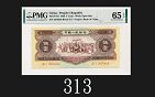 一九五六年中國人民銀行伍圓,65EPQ佳品1956 The People's Bank of China $5, s/n 2676456. PMG 65EPQ |