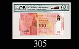 2017年中國銀行在港服務壹佰週年紀念鈔壹佰圓,BC222222號 2017 Bank of China 100th Anniversary Commemorative $100, s/n BC222222. EPQ67 Superb Gem UNC |
