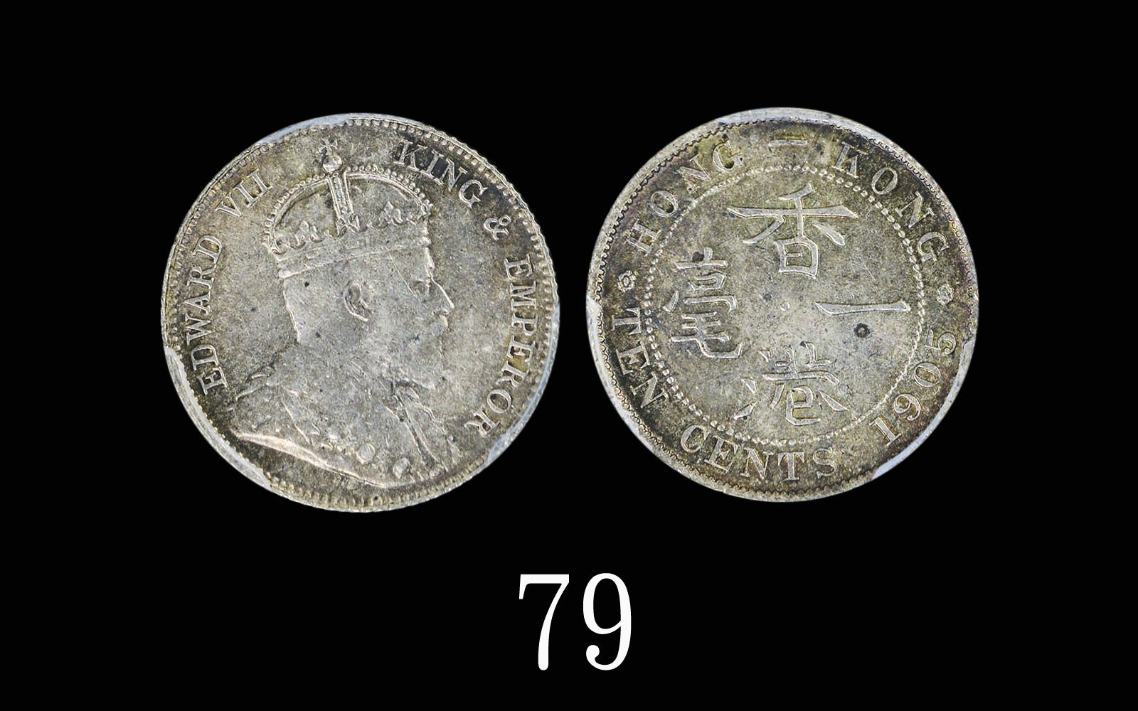 Auction Information 1905年香港愛德華七世銀幣一毫,極罕見年份,香港錢幣集珍品之一1905 Edward VII Silver 10 Cents (Ma C19). Key date & extremely rare HK coin. PCGS AU58 金盾
