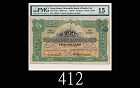 1912-41年香港有利銀行伍員試色樣票,有利鈔試色拍場極少見,保存完好印色明亮更是難能可貴1912-41 The Mercantile Bank of India Limited $5 Color Trial Specimen (Ma M3), printed 332 at top. Extremely rare color trial & well-preserved. PMG 53 mounted |