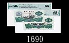 1960年中國人民銀行貳圓,五星水印連號兩枚EPQ65、66佳品1960 The People's Bank of China $2, s/ns 4887503-04, stars wmk. PMG EPQ65 & 66 (2pcs) |