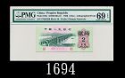 1962年中國人民銀行貳角,二及三羅馬票號,兩枚EPQ67、68高評1962 The People's Bank of China 20 Cents, s/ns 1069237 & 57638347. PMG EPQ67 & 68 (2pcs) |