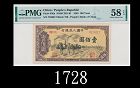 民國三十八年中國人民銀行拾圓,工農,64分佳品1949 The People's Bank of China $10, s/n 14581488. PMG 64 |