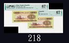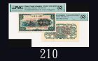一九五三年中國人民銀行壹角,蘇聯版連號兩枚67EPQ高評1953 The People's Bank of China 10 Cents, s/ns 2383975-76, Russian var. Both PMG 67EPQ (2pcs). |