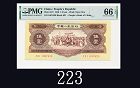 一九五六年中國人民銀行伍圓,66EPQ佳品1956 The People's Bank of China $5, s/n 1007428. PMG 66EPQ |