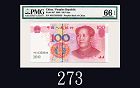 2000年中國人民銀行迎接新世紀紀念塑鈔壹佰圓,67EPQ高評2000 The People's Bank of China Welcome the New Century Commemorative Note $100, s/n J05266633. PMG 67EPQ |
