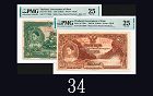 1935-36年泰國10銖、20銖,兩枚評級稀品1935-36 Thailand 10 & 20 Baht, ND, s/ns N/40 14084 & P/17 79961, 3 headed elephant. Both PMG 25 (2pcs) |