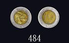 1996年香港合金幣拾圓錯鑄幣:背模100°逆轉1996 Hong Kong Copper-Nickel-Brass $10 (Ma C53), mint error: 100° CCW rotated dies. PCGS AU55 金盾 #46332227 |