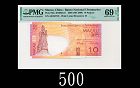 2005年大西洋銀行拾圓,69EPQ超高評2005 Banco Nacional Ultramarino 10 Patacas, s/n AR162710. PMG 69EPQ |