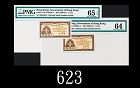1941年香港政府壹仙,無字冠、連號兩枚65EPQ、64佳品1941 Government of HK 1 Cent, ND, s/ns 9845483-84. PMG 65EPQ & 64 (2pcs) |