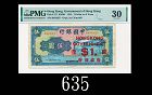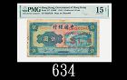 1941年中國銀行伍圓改香港政府壹圓,日治時期港鈔重要且稀少之品種,品相完好評級品1941 Bank of China $5 changed to HK Government $1, s/n B438027. Very rare. PMG 30 splits & spindle hole |
