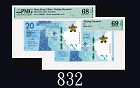 2022年中國銀行24屆冬奧紀念鈔貳拾圓,無字冠及AA版一組兩枚68、69EPQ高評2022 Bank of China 24th Winter Olympic $20, s/ns 026690 & AA669651. PMG 68 & 69EPQ (2pcs) |