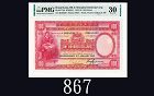 1930年香港上海滙豐銀行壹百圓,極罕年份手簽大聖書,邊角完好,印色明麗。背左有字1930 The Hong Kong & Shanghai Banking Corp $100, s/n B346929, handsigned. Very rare. PMG 30 minor repair, annotations |