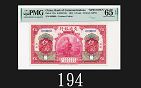 民國三年交通銀行拾圓樣票,甚為稀少,65EPQ佳品1914 Bank of Communications $10 Specimen, s/n 00000. Rare. PMG 65EPQ |