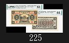 民國廿一年大中銀行伍圓單面樣本一套兩枚,上海,十分罕見之品種,63及64分佳品1932 Tah Chung Bank $5 Uniface Specimens, s/n A0000000, Shanghai. Extremely rare for type. PMG 63 stain & pinholes & 64 (2pcs) |