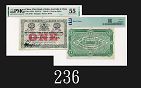 民國三十一年山東省昌樂縣流通券拾圓、江西省廣昌縣商會臨時輔幣券壹角,兩枚評級稀品1942 Shantung Changlo County Note $10 & Kiangsi Kwang Chang Commerce Chamber 10 Cents, s/ns 016605 & 36482. Rare. PCGS 25 & 10 details paper damage (2pcs) |