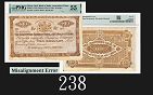 19-- (約1920)年印度新金山中國麥加利銀行拾圓錯體庫存票:裁切移位,天津,罕見品19-- (ca 1920) The Chartered Bank of India, Australia & China $5 Remainder, ND, Tientsin, msialignment error. Extremely scarce. PMG 55 minor restoration, previously mounted |