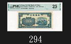 民國三十二年北海銀行山景圖壹百圓,大字票號,山東,背印英文「新民主 自由中國」及「保」字,甚少見之版別1943 Pei Hai Bank $100, s/n B1680414, large s/n, Shantung, printed "New Democracy New China" on back. Rare. PMG 15 |