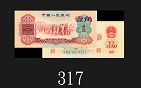 1960年中國人民銀行壹角,棗紅。未使用1960 The People's Bank of China 10 Cents, s/n 9979241, red underprint. UNC |