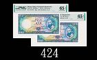 1981年大西洋銀行壹百圓,連號兩枚65EPQ佳品1981 Banco Nacional Ultramarino 100 Patacas, s/ns LJ74778-79. Both PMG 65EPQ (2pcs) |