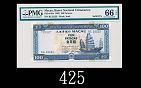 1958年大西洋國海外滙理銀行貳拾伍圓樣票,年份稀少,64分佳品1958 Banco Nacional Ultramarino 25 Patacas Specimen, s/n B000000. Very rare date. PMG 64NET printer's annotations, previously mounted |