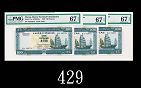 1999年大西洋銀行壹百圓,連號三枚67EPQ高評1999 Banco Nacional Ultramarino 100 Patacas, s/ns MA82371-73. SOLD AS IS/NO RETURN. All PMG 67EPQ (3pcs) |