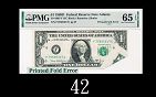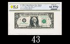 1981A年美國1元錯體票:摺白,64PPQ佳品1981A USA $1, s/n F77197962C, gutter fold error. PCGS 64PPQ |