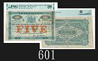 1941年香港有利銀行伍員,邊角完整,保存完好1941 The Mercantile Bank of India Limited $5, s/n 216327. Very rare & well-preserved. PMG 15 |