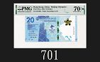 2022年中國銀行24屆冬奧紀念鈔貳拾圓,無字冠,70★EPQ超高評2022 Bank of China 24th Winter Olympic $20, s/n 500002. PMG 70★EPQ |