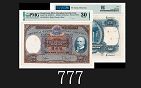 1948年香港有利銀行壹佰員,手簽,票面圖案細緻清晣,原紙原味,雍容端麗,了無歲月遺痕,品相之佳讓人絕倒,55分極可能是48年最高分一枚1948 The Mercantile Bank of India Limited $100, s/n 60394, handsigned. An brilliant example of one of the rarest MB banknotes. Meticulous in details and fresh in colors, most likely the highest score item of the 1948 series. PMG 55 |