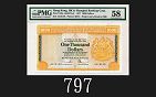 1977年香港上海滙豐銀行壹仟圓,頭版首次發行仟圓面額,50分佳品1977 The Hong Kong & Shanghai Banking Corp $1000, s/n B856663, 1st series. Very rare. PMG 50 |